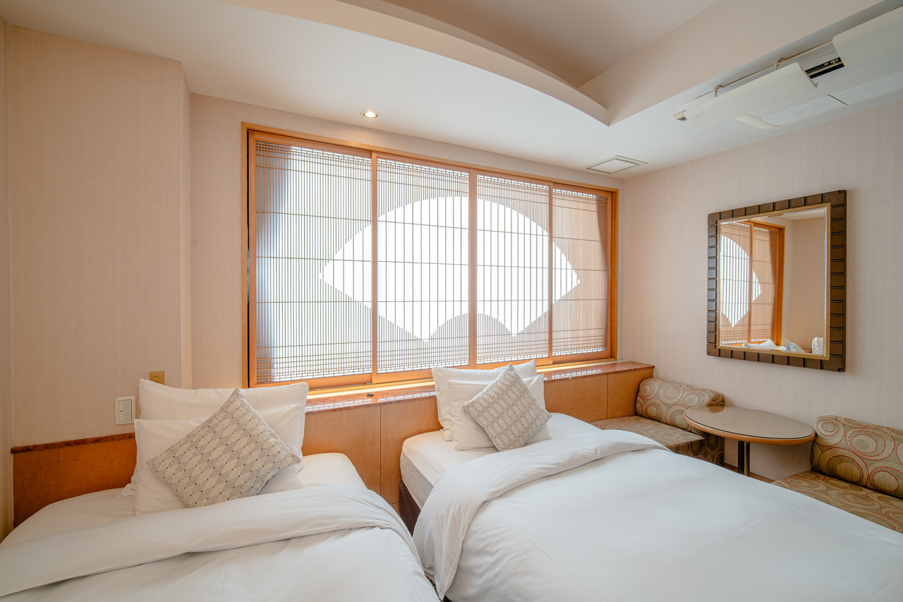 ハイクオリティーな中にも1室1室異なった個性が窺える、中層階に位置する広さ約30㎡のツインルームです。